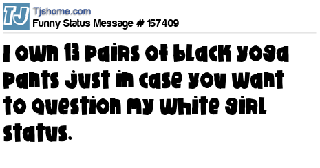 X says I own 13 pairs of black yoga pants just in case you want to question my white girl status.