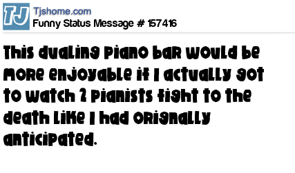 X says This dualing piano bar would be more enjoyable if I actually got to watch 2 pianists fight to the death like I had orignally anticipated.