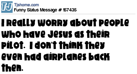 X says I really worry about people who have Jesus as their pilot. I don't think they even had airplanes back then.