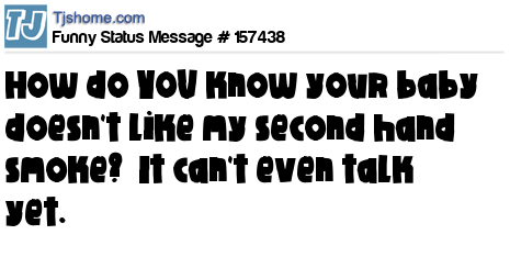 X says How do YOU know your baby doesn't like my second hand smoke?  It can't even talk yet.