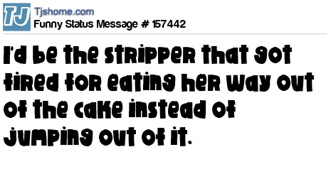 X says I'd be the stripper that got fired for eating her way out of the cake instead of jumping out of it.