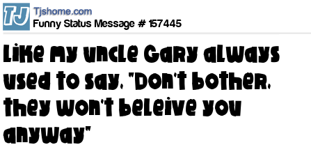 X says Like my uncle Gary always used to say, "Don't bother, they won't beleive you anyway"