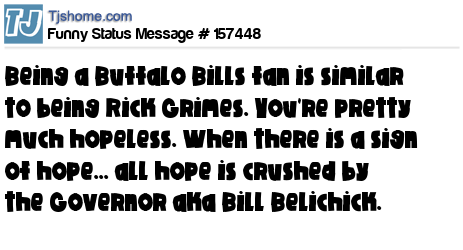X says Being a Buffalo Bills fan is similar to being Rick Grimes. You're pretty much hopeless. When there is a sign of hope... all hope is crushed by the Governor aka Bill Belichick.