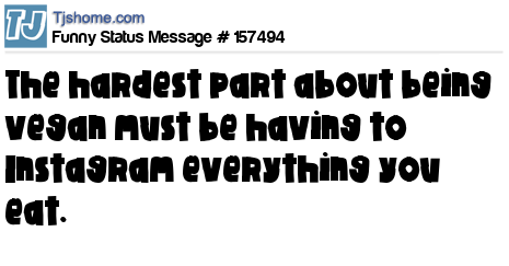 X says The hardest part about being vegan must be having to Instagram everything you eat.