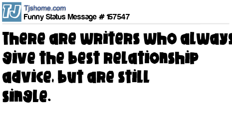 - # 64704 Sorry, but I don't take relationship advice from single people. That's like taking advice on how to jump hurdles from a dude with no legs.