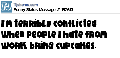 X says I'm terribly conflicted when people I hate from work, bring cupcakes.