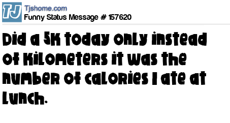 X says Did a 5k today only instead of kilometers it was the number of calories I ate at lunch.