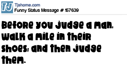 Before you judge a man, walk a mile in his shoes. After that who cares?... He's a mile away and you've got his shoes! .. .. .. Is that what you were going for there, slick???
