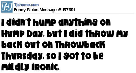X says I didn't hump anything on Hump Day, but I did throw my back out on Throwback Thursday, so I got to be mildly ironic.
