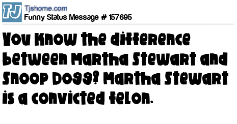 X says You know the difference between Martha Stewart and Snoop Dogg? Martha Stewart is a convicted felon.