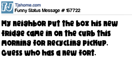 X says My neighbor put the box his new fridge came in on the curb this morning for recycling pickup. Guess who has a new fort.