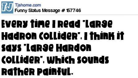 X Every time I read "Large Hadron Collider", I think it says "Large Hardon Collider", which sounds rather painful.