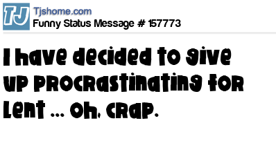 X says I have decided to give up procrastinating for Lent ... oh, crap.