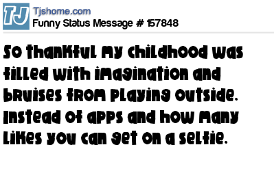 X says So thankful my childhood was filled with imagination and bruises from playing outside. Instead of apps and how many likes you can get on a selfie.