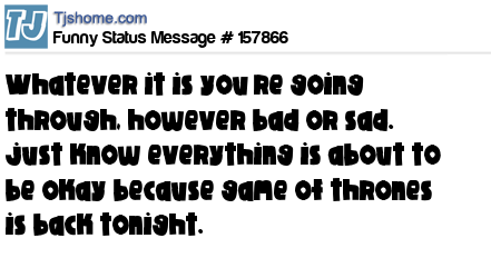 X says whatever it is you’re going through, however bad or sad. just know everything is about to be okay because game of thrones is back tonight.