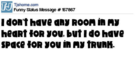 - # 118614 My heart has no room for you but the trunk of my car does!