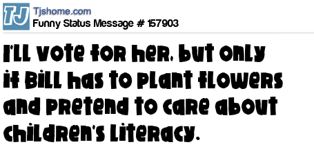 X says I'll vote for her, but only if Bill has to plant flowers and pretend to care about children's literacy.
