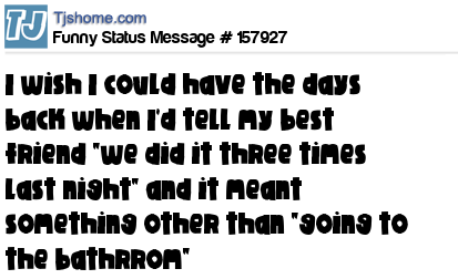 X says I wish I could have the days back when I'd tell my best friend "we did it three times last night" and it meant something other than "going to the bathrrom"