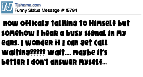 X is now officaly talking to Himself but somehow I hear a busy signal in my ears. I wonder if I can get Call Waiting????? Wait.... maybe it's better I don't answer myself...
