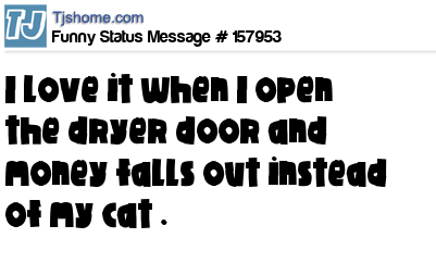 X says I love it when I open the dryer door and money falls out instead of my cat .