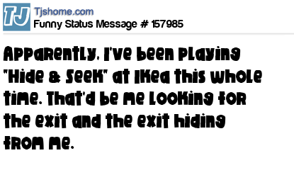 X says Apparently, I've been playing "Hide & Seek" at Ikea this whole time. That'd be me looking for the exit and the exit hiding from me.