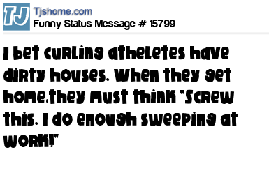 X I bet curling atheletes have dirty houses. When they get home,they must think "Screw this. I do enough sweeping at work!"