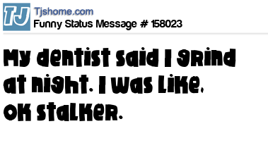 - # 145328 I just hope my stalker doesn't tell my dentist how infrequently I floss.