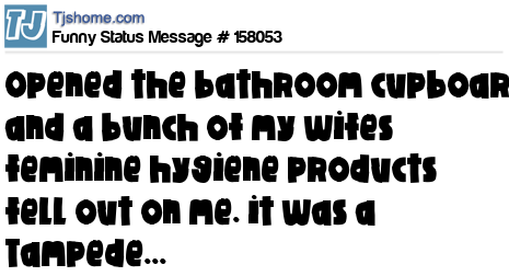 X says Opened the bathroom cupboard and a bunch of my wifes feminine hygiene products fell out on me. it was a Tampede...