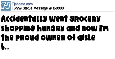 - # 159157 I went grocery shopping hungry and I'm now the proud owner of aisles 6, 8, 9, 12, and most of the bakery.