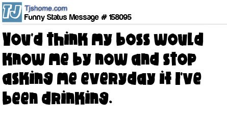 X says You'd think my boss would know me by now and stop asking me everyday if I've been drinking.