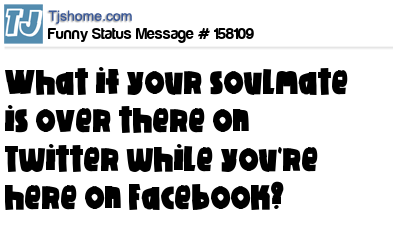X says What if your soulmate is over there on Twitter while you're here on Facebook?
