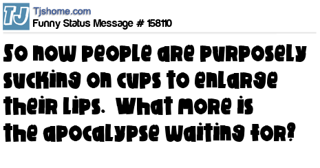 X says So now people are purposely sucking on cups to enlarge their lips. What more is the apocalypse waiting for?