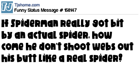 X says If Spiderman really got bit by an actual spider, how come he don't shoot webs out his butt like a real spider?