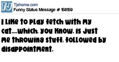 X says I like to play fetch with my cat....which, you know, is just me throwing stuff, followed by disappointment.