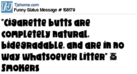 X says "Cigarette butts are completely natural, bidegradable, and are in no way whatsoever litter" ~ Smokers