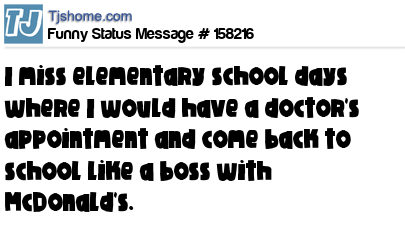 X I miss elementary school days where I would have a doctor's appointment and come back to school like a boss with McDonald's.
