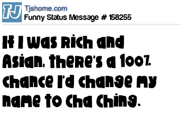 X If I was rich and Asian, there's a 100% chance I'd change my name to Cha Ching.