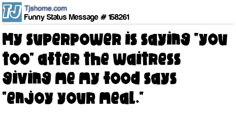 X says My superpower is saying "you too" after the waitress giving me my food says "enjoy your meal."