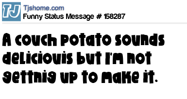 X says A couch potato sounds deliciouis but I'm not gettnig up to make it.