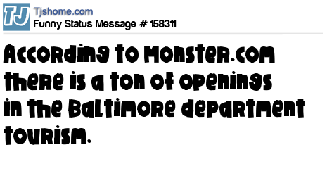 X says According to Monster.com there is a ton of openings in the Baltimore department tourism.