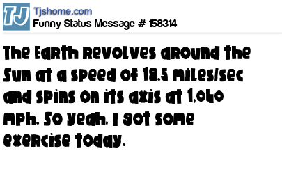 X says The Earth revolves around the Sun at a speed of 18.5 miles/sec and spins on its axis at 1,040 mph. So yeah, I got some exercise today.