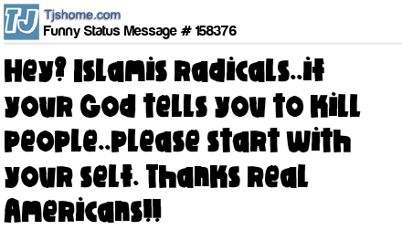 X says Hey? Islamis radicals..if your God tells you to kill people..please start with your self. Thanks real Americans!!