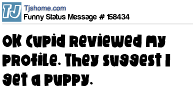 X says OK Cupid reviewed my profile. They suggest I get a puppy.