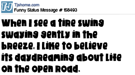 X says When I see a tire swing swaying gently in the breeze, I like to believe its daydreaming about life on the open road.