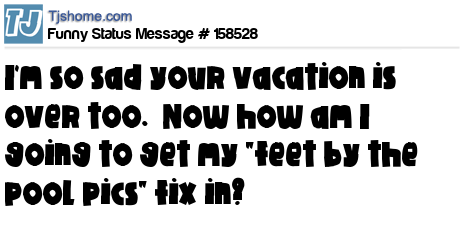 X says I'm so sad your vacation is over too.  Now how am I going to get my "feet by the pool pics" fix in?