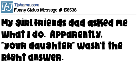 - # 166304 My girlfriends dad asked me what I do. Apparently, "your daughter" wasn't the right answer.
