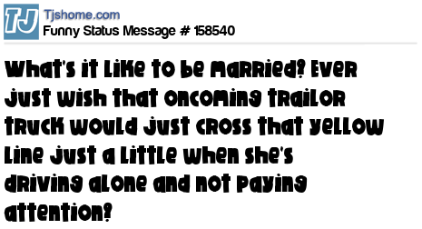 X says What's it like to be married? Ever just wish that oncoming trailor truck would just cross that yellow line just a little when she's driving alone and not paying attention?