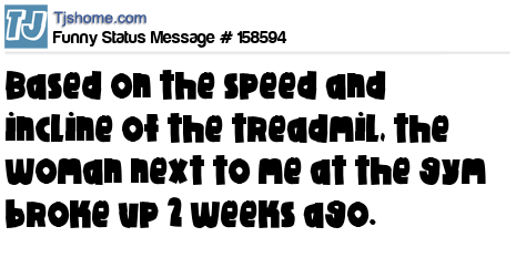 X says Based on the speed and incline of the treadmil, the woman next to me at the gym broke up 2 weeks ago.
