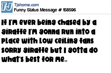 X says If I'm ever being chased by a giraffe I'm gonna run into a place with low ceiling fans sorry giraffe but I gotta do what's best for me..