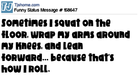 X says Sometimes I squat on the floor, wrap my arms around my knees, and lean forward... because that's how I roll.